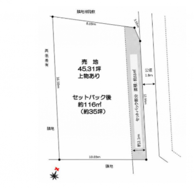 (西側隣地水道管が南側に埋設、承諾書あり)