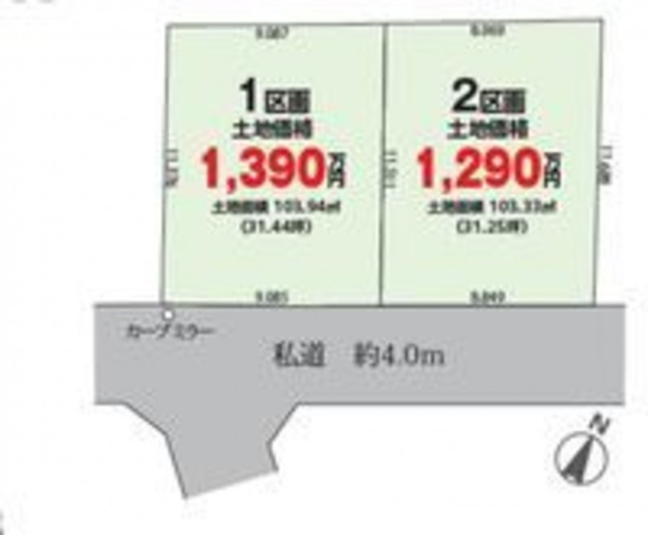 - 南東側 私道4m 間口約9m