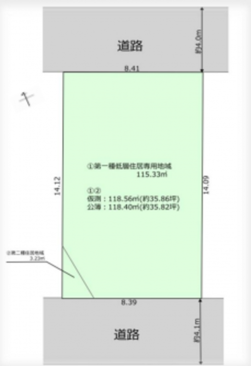 対象地は①第一種低層住居専用地域となります。