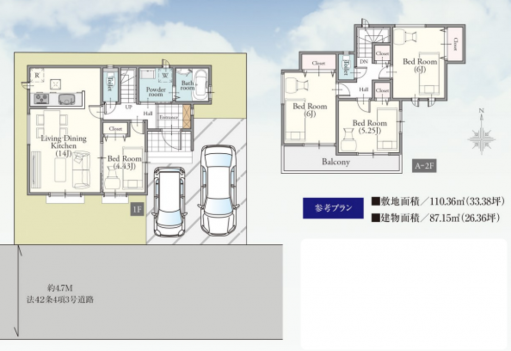 駅徒歩9分 暮らしやすい生活導線 2台並列駐車可能です。