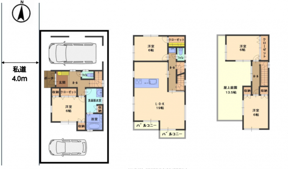 - 西側 私道4m 間口約7.5m