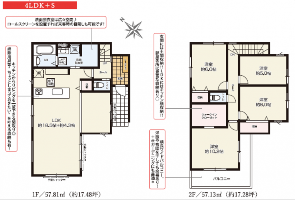 - システムキッチン、洗浄便座、ウォークインクローゼット、床下収納、トイレ2箇所